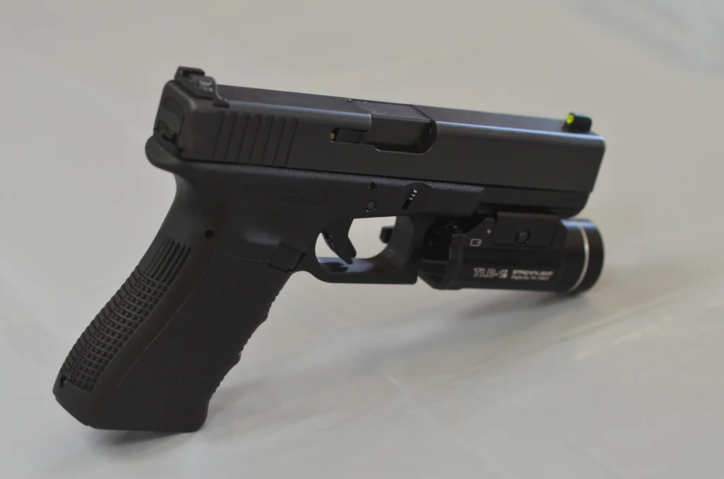- The front sight uses photoluminescent paint, which only requires a 15-second charge from an LED to glow in the dark for several minutes.
